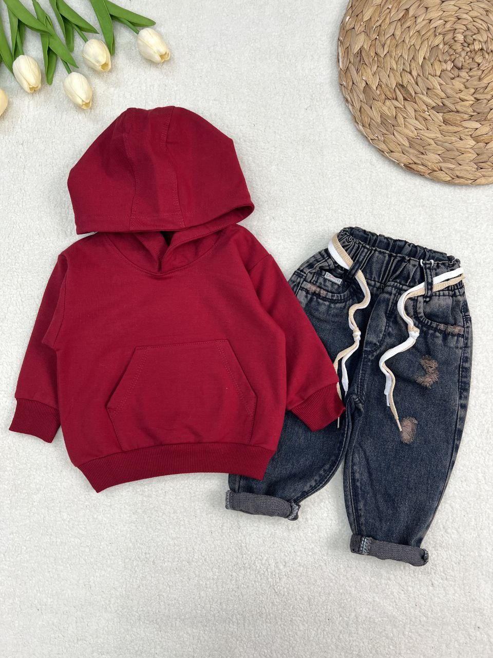 🔹️سایز۳(۱۸ تا ۲۴ ماه )👈قد هودی۳۸/ پهنا ۳۳/ قد آستین ۲۶