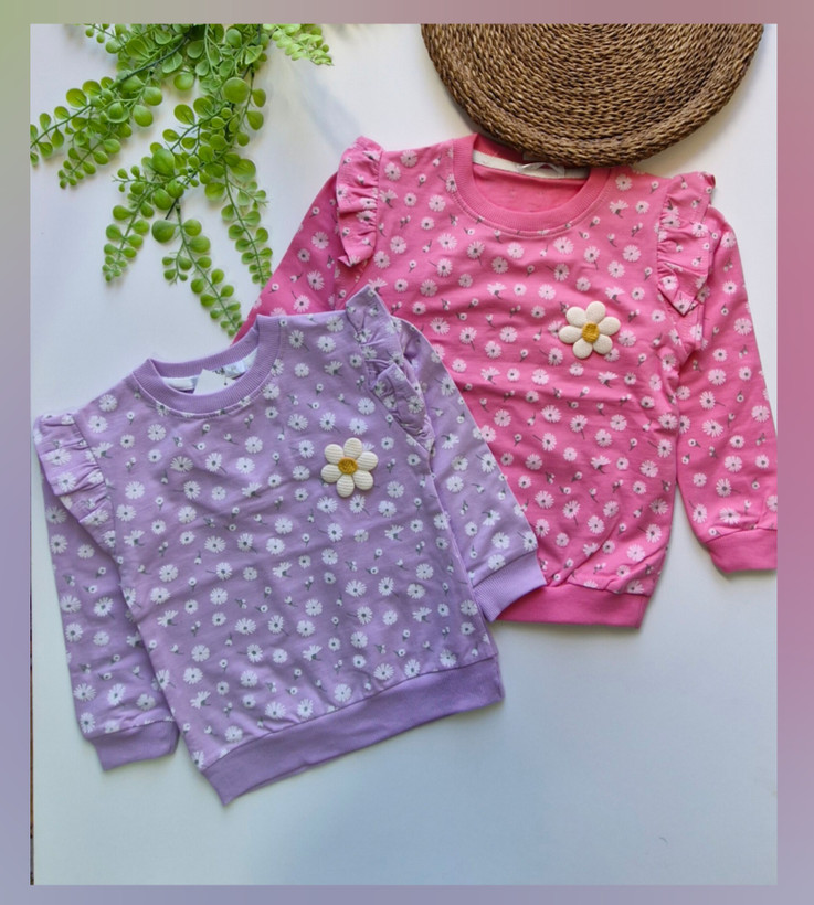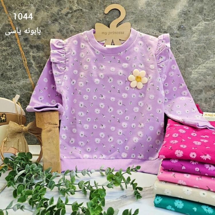💫 یقه گرد همراه با چاپ بابونه و آستین چین دار