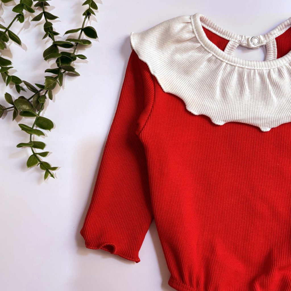 🍒 بخاطر یقه سفیدی که داره به نوزاد تازه متولد هم قشنگ میشه▪️ 🍓 میتونید با تل بافتنی قرمز ست کنید داخل سایت هست (یک الی دو سانت خطای اندازه گیری و یک الی دو درجه اختلاف نور دوربین را در نظر بگیرید)